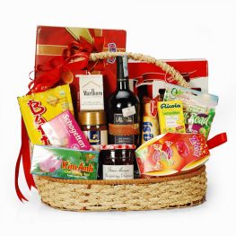 Thành phần là các sản phẩm chất lượng cao, nhập ngoài, giỏ quà là sự kết hợp tinh tế về màu sắc, cách sắp xếp sản phẩm đẹp mắt, trang trí bằng ruy băng nhũ óng ánh nổi bật không khí của gói quà ngày tết. Với mức giá tốt, giỏ quà là lựa chọn hoàn hảo cho một món quà biếu sếp dịp tết đến xuân về.